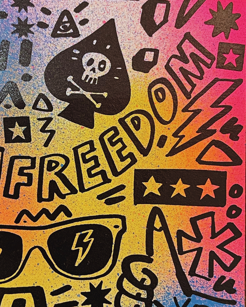 Make a statement with this bold A5 single layer screen print with a hand finished spray painted background. (Due to the handmade nature of this technique the colours will vary slightly and may not exactly match the print pictured)