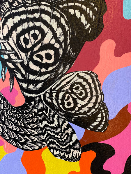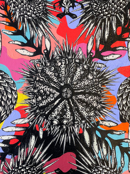Original Piece: Acrylic, Collage and Silkscreen Print on Wooden Panel