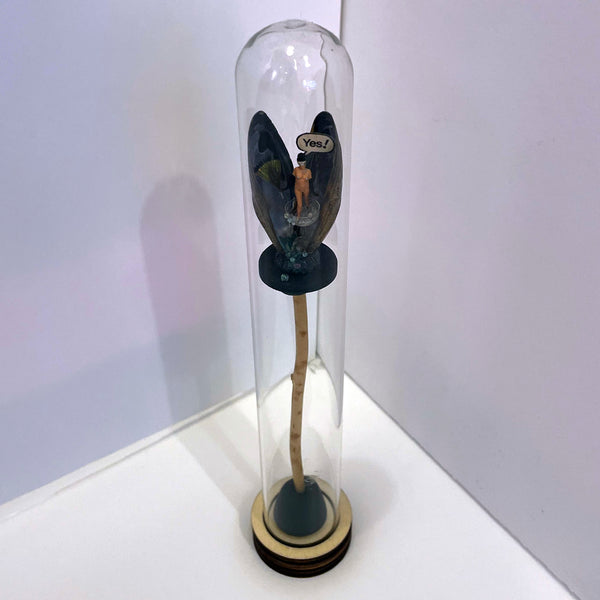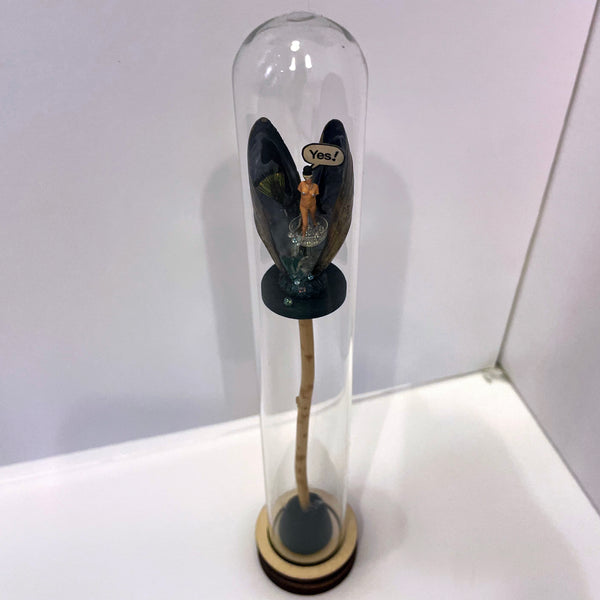 Stunning Diorama Featuring a Woman and cocktail glass emerging from a Mussel shell in a glass dome.